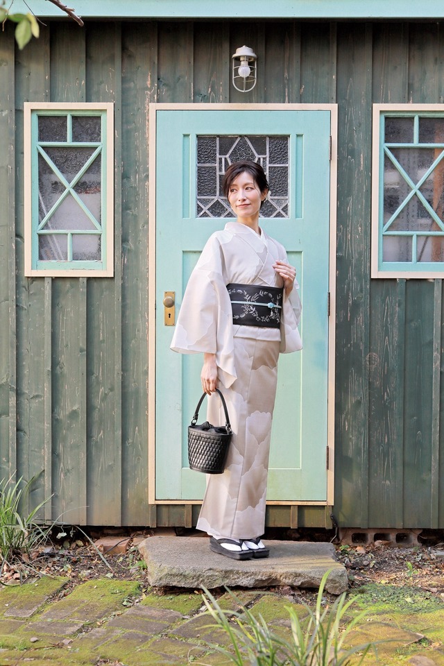 コレカラキモノ 着尺「開花」 ベージュ