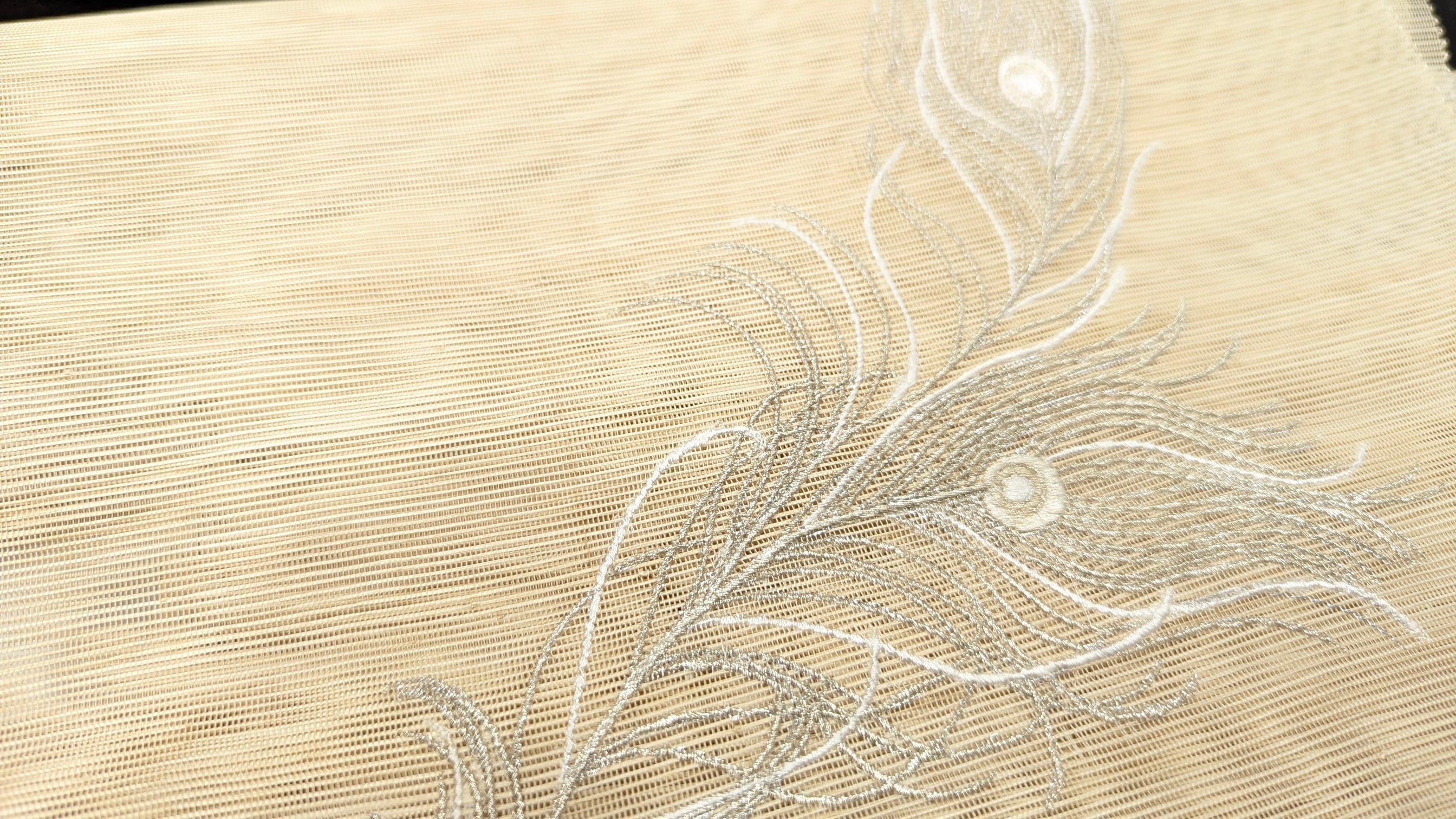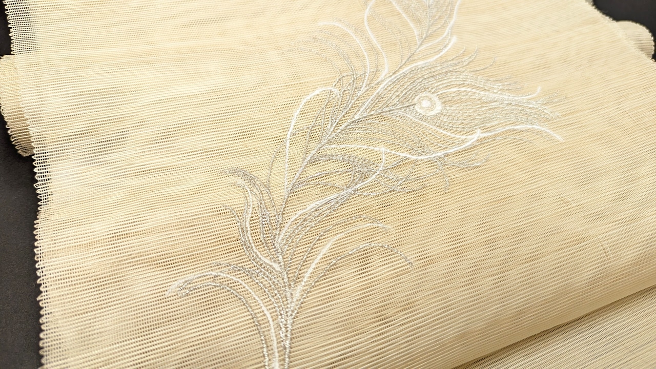 誉田屋芭蕉九寸名古屋帯 白孔雀 28 白銀 芭蕉